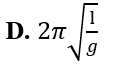 Chu kì dao động điều hòa của một con lắc đơn có chiều dài dây treo l tại nơi có gia tốc trọng trường g là