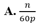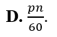 Một máy phát điện xoay chiều một pha với phần cảm là rôto có p cặp cực. Khi rôto quay đều với tốc độ n (vòng/phút) thì tần số của suất điện động (tính theo đơn vị Hz ) do máy phát ra là