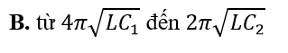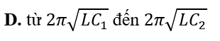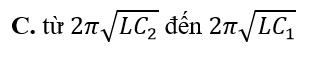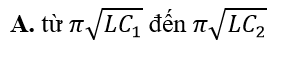 Một mạch dao động điện từ LC lí tưởng gồm cuộn cảm thuần độ tự cảm L và tụ điện có điện dung thay đổi được từ đến . Mạch dao động này có chu kì dao động riêng thay đổi được