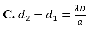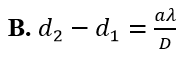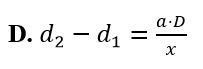 Trong thí nghiệm Y-âng về giao thoa ánh sáng, bước sóng ánh sáng đơn sắc dùng trong thí nghiệm là , khoảng cách giữa hai khe là a, khoảng cách từ mặt phẳng chứa hai khe đến màn là D. Gọi lần lượt là khoảng cách từ hai nguồn đến vị trí vân M trên màn quan sát và x là khoảng cách từ vân trung tâm đến vân M. Ta luôn có