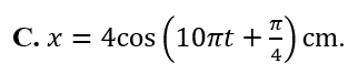 Một chất điểm dao động theo phương trình (cm). Dao động của chất điểm có độ dài quỹ đạo là