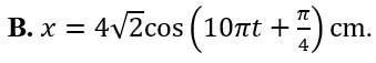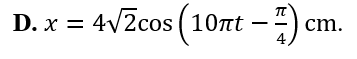Một vật dao động điều hòa với tần số góc . Tại thời điểm t = 0 vật đi qua vị trí có li độ thì vận tốc của vật là . Phương trình dao động của vật là