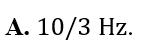 Một sợi dây đàn hồi, đầu A gắn với nguồn dao động và đầu B tự do. Khi dây rung với tần số f= 10Hz thì trên dây xuất hiện sóng dừng ổn định có 5 điểm nút trên dây với A là nút và B là bụng. Nếu đầu B được giữ cố định và tốc độ truyền sóng trên dây không đổi thì phải thay đổi tần số rung của dây một lượng nhỏ nhất bằng bao nhiêu để trên dây tiếp tục xảy ra hiện tượng sóng dừng ổn định?