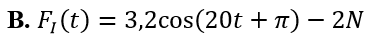 Một con lắc lò xo treo thẳng đứng trên giá tại I. Đưa vật dọc theo trục của lò xo tới vị trí lò xo nén 1,5cm. Cho và bỏ qua mọi ma sát. Chọn trục Ox hướng thẳng đứng xuống dưới. Gốc O trùng vị trí cân bằng của vật. Tại thời điểm t = 0 thì buông nhẹ cho vật dao động. Lấy chiều dương của lực trùng với chiều dương trục Ox. Biểu thức của lực tác dụng lên điểm treo I là